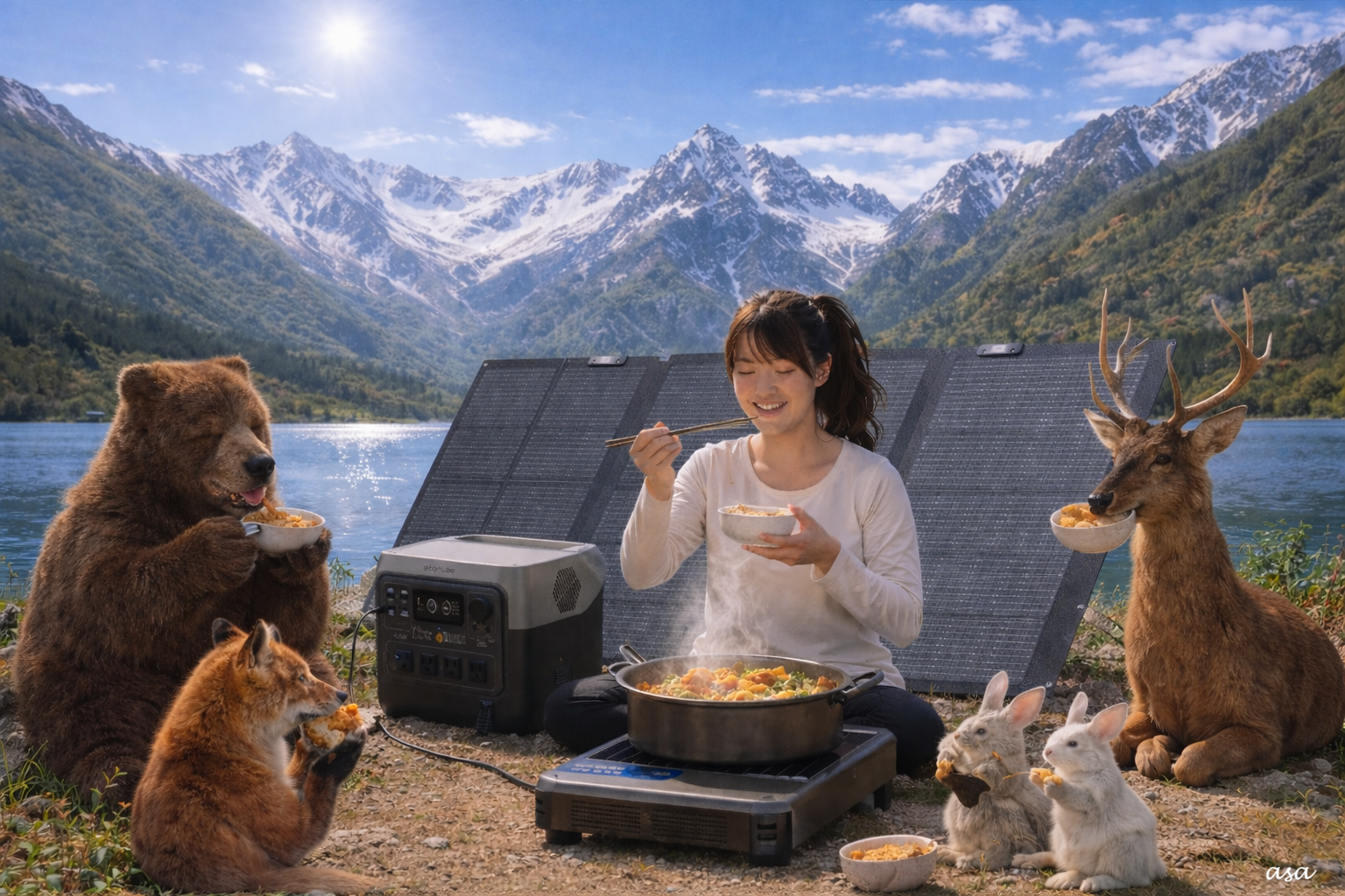 • ポータブル電源 + ソーラーパネル(あれば強い)