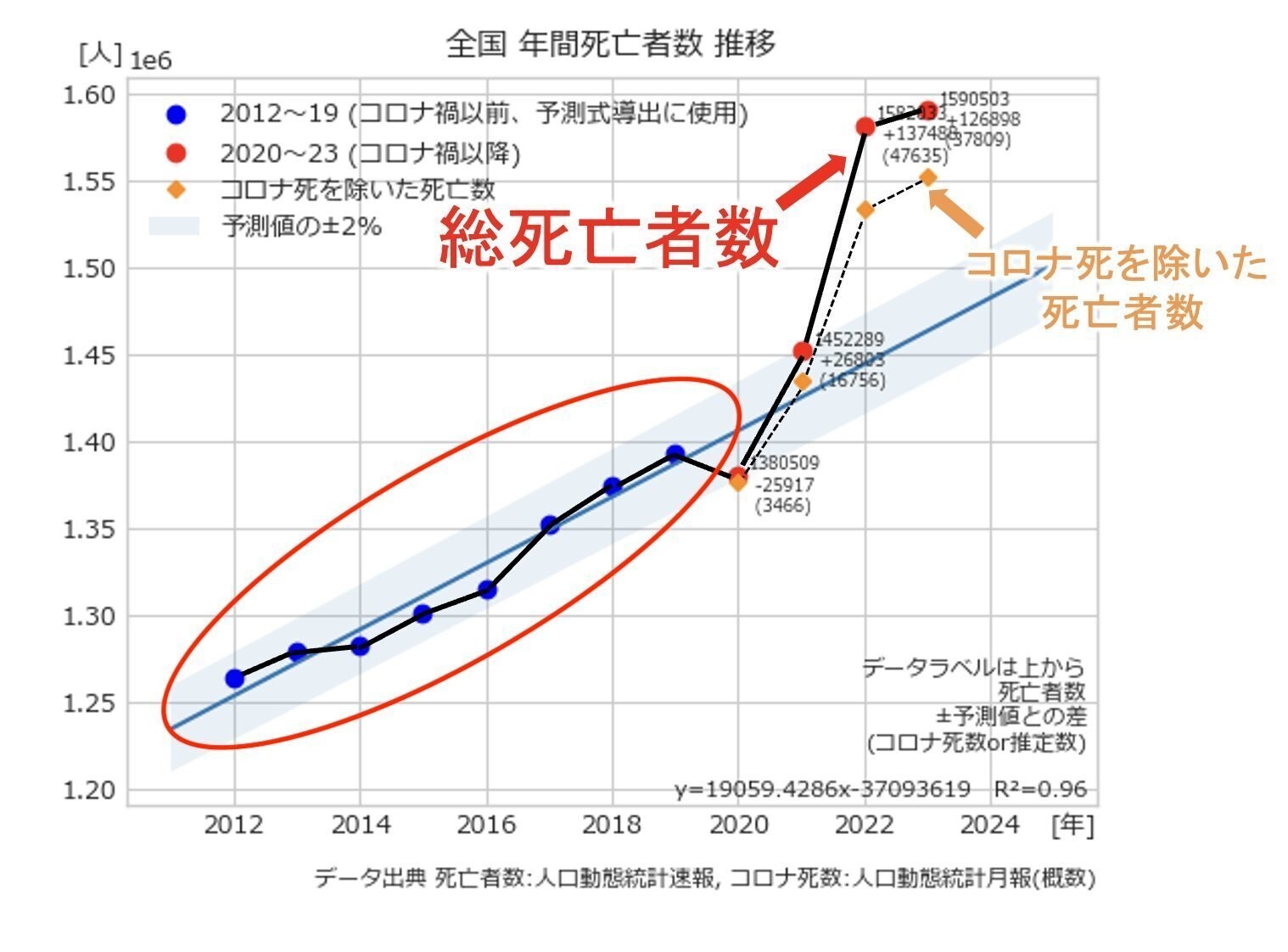 以上、note24 日本人の謎の大量死「超過死亡」~今すべての要因を洗い流す~森田洋之 2024.5.31 参考